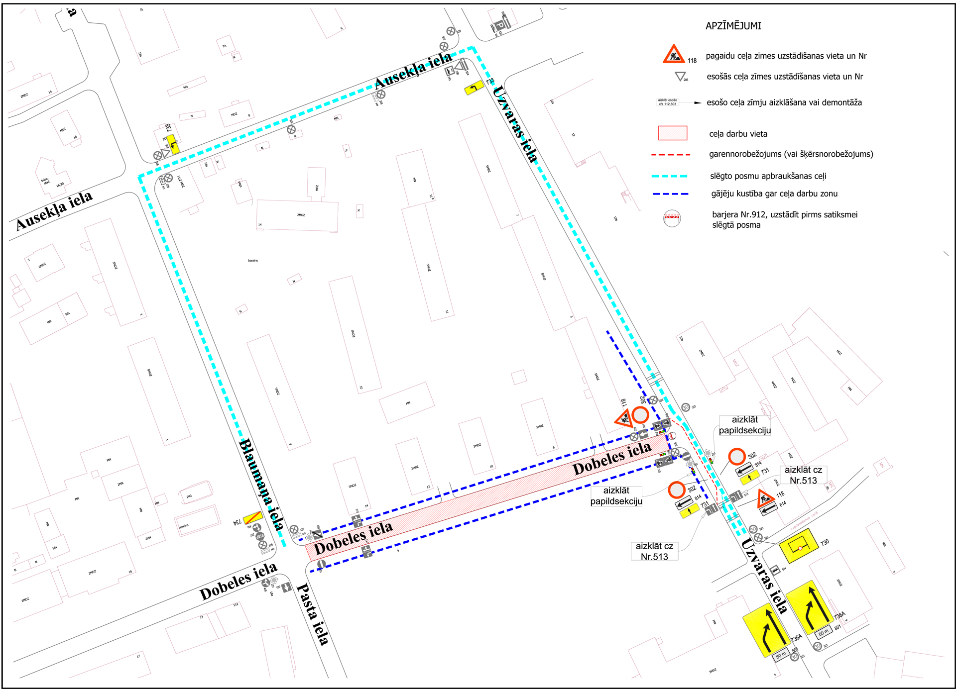 Ierobežota satiksmes un gājēju kustība Dzirnavu ielā un Bauskas ielā – Pagarinājums