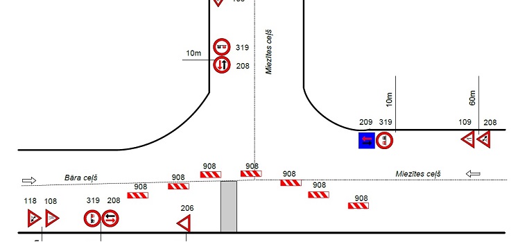 • Satiksmes organizācijas shēma Dobeles šosejas un Atmodas ielas krustojumā