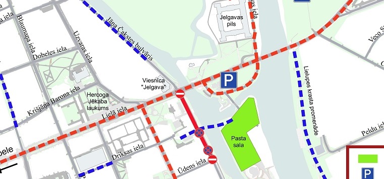 Apgaismojums Ganību iela Garozas iela Hercoga Jēkaba laukums Ielu uzturēšana Ietve Lielupe Lielā iela Loka maģistrāle Nedēļa Pasta sala Pilsētsaimniecība Rīgas iela Satiksmes ierobežojumi Svētku nodrošināšana