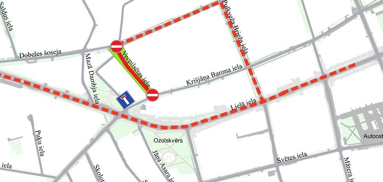 Slēgta satiksmes kustība un ierobežota gājēju kustība Krišjāņa Barona ielā