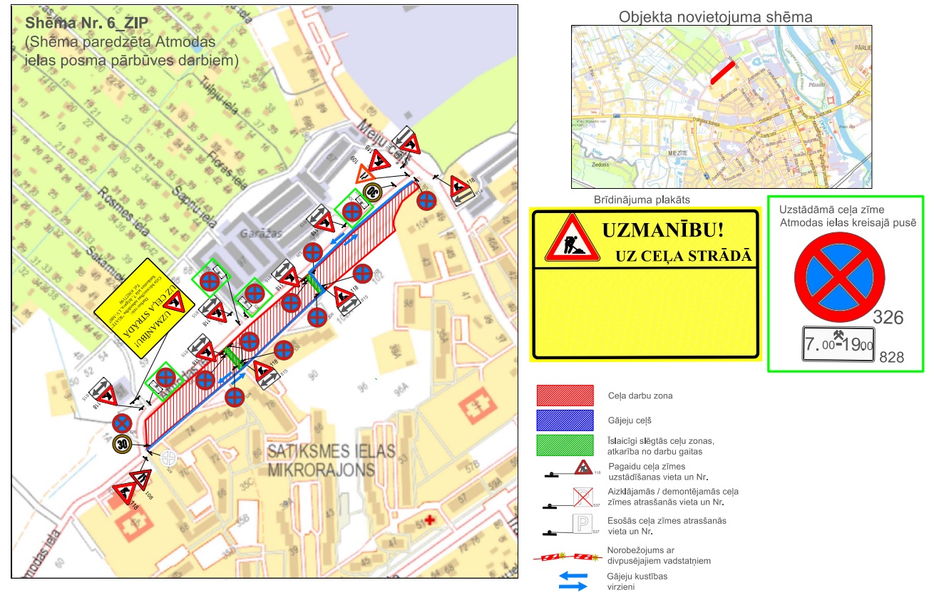 Aicinām ievērot satiksmes organizācijas shēmas un ceļa zīmes. Iedzīvotājiem, kuri dzīvo attiecīgajā teritorijā, piekļuve īpašumiem tiks nodrošināta. Satiksmes organizācija netiks mainīta. Pielikumā pievienota shēma, kurā norādīta darba zona nakts stundās.