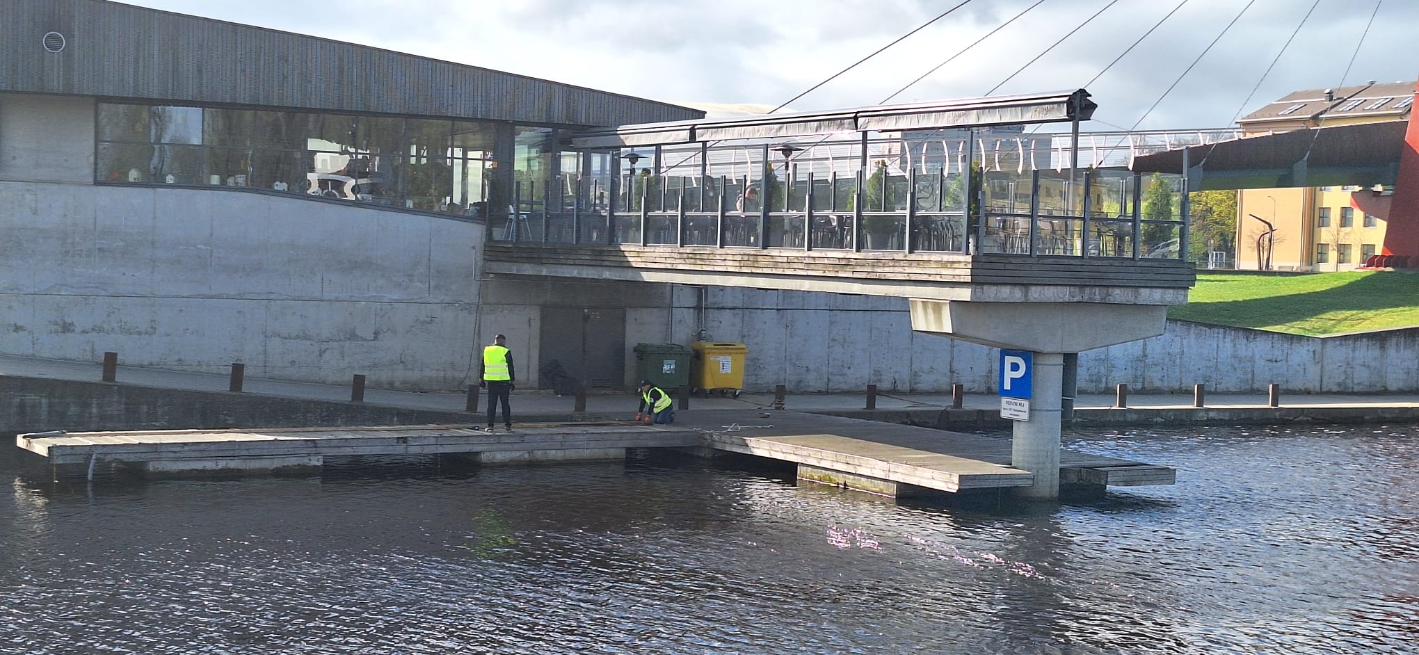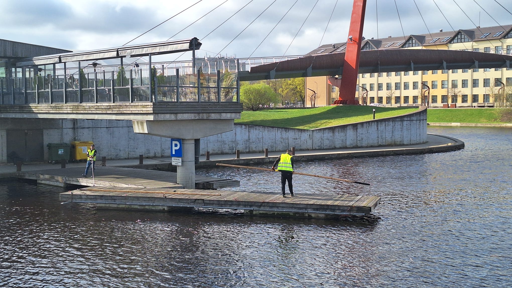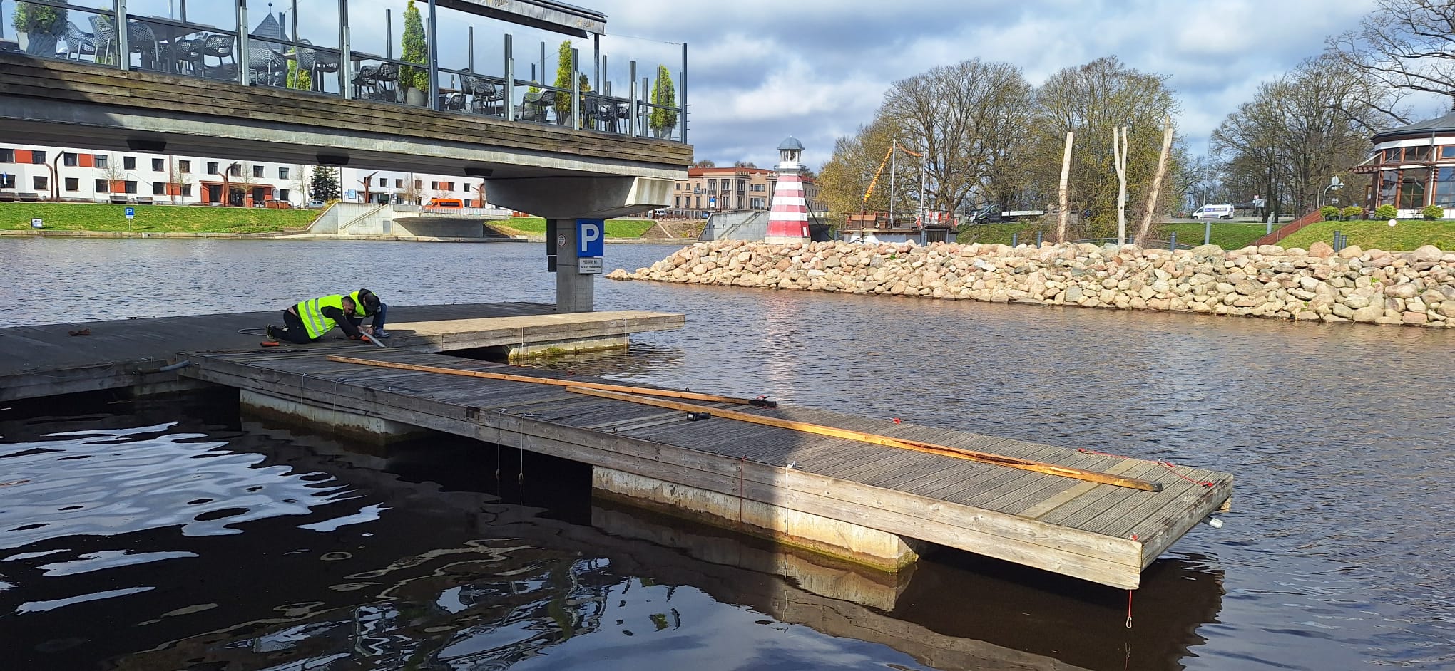 Pontona uzstādīšanu un remontdarbus veic firma SIA “RT Timber”.