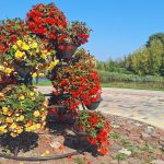 Šobrīd pilsētā zied asinssarkanais amarants, hibrīdās begonijas, rudbekijas, skaistnātre, batātu ipomeja, hibrīdā salvija, petūnijas un lauvmutītes, kas turpinās priecēt līdz pirmajām salnām. Pēc tam puķu podos ziedi tiks aizstāti ar skujām.