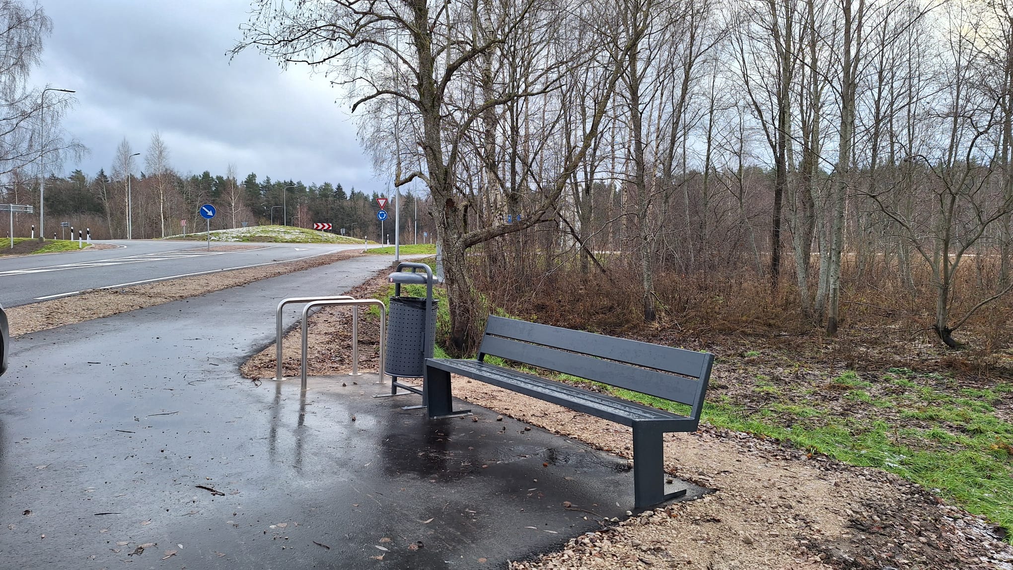 Rotācijas apļa zonā jauna asfaltbetona seguma gājēju celiņa un LED apgaismojuma izbūve;