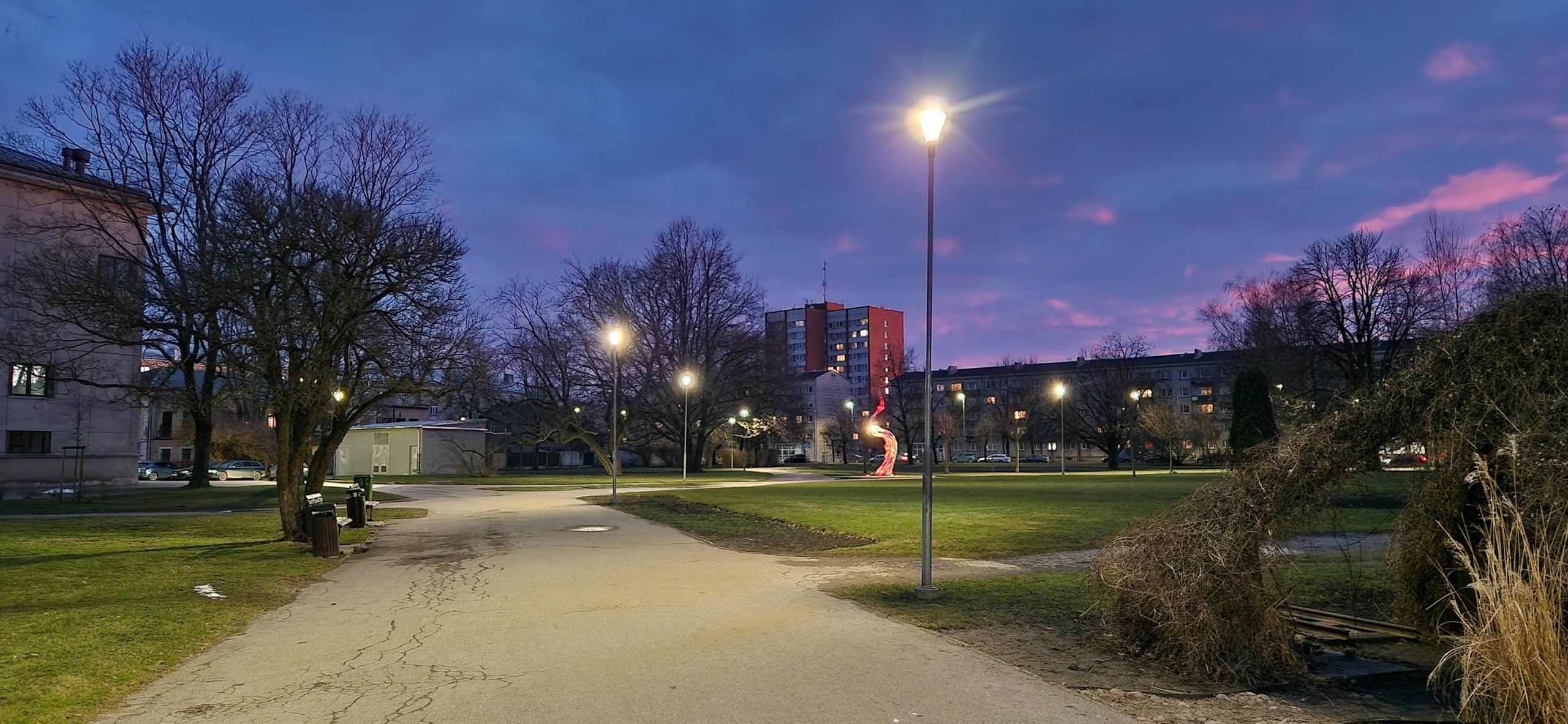 Raiņa parka apgaismojuma pārbūve (aktivitātes ietvaros tiks veikta 46 jaunu LED parka gaismekļu uzstādīšana un to aprīkošana ar apgaismojuma līmeņa regulēšanas ierīcēm).