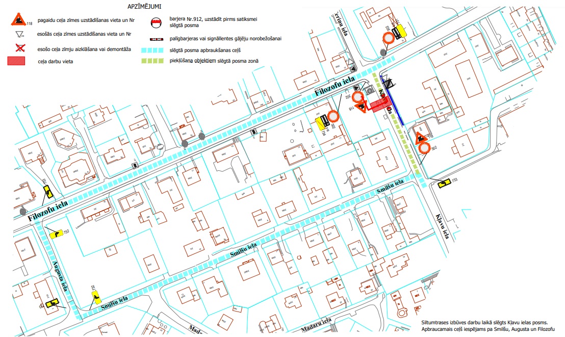 Līdz 31. augusta pulksten 17 slēgta satiksme Kļavu ielas posmā no Filozofu ielas līdz Smilšu ielai. Iedzīvotājiem piekļuve īpašumiem slēgtajā ielas posmā tiek nodrošināta.