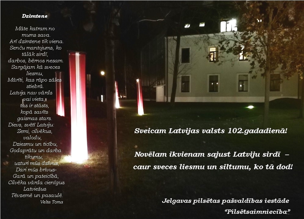 Sveicam Latvijas valsts 102. gadadienā! PilsētsaimniecībaDalītiesFacebookTwitterGoogle+PinterestLinkedIn Līdzīgi rakstiInformācija par JVPI “Pilsētsaimniecība” cenu aptaujām publicēta iestādes tīmekļvietnē10.12.2025Apsveikums Latvijas Republikas Proklamēšanas dienā14.11.2025Mirušo piemiņas diena – 23. novembrī21.10.2025