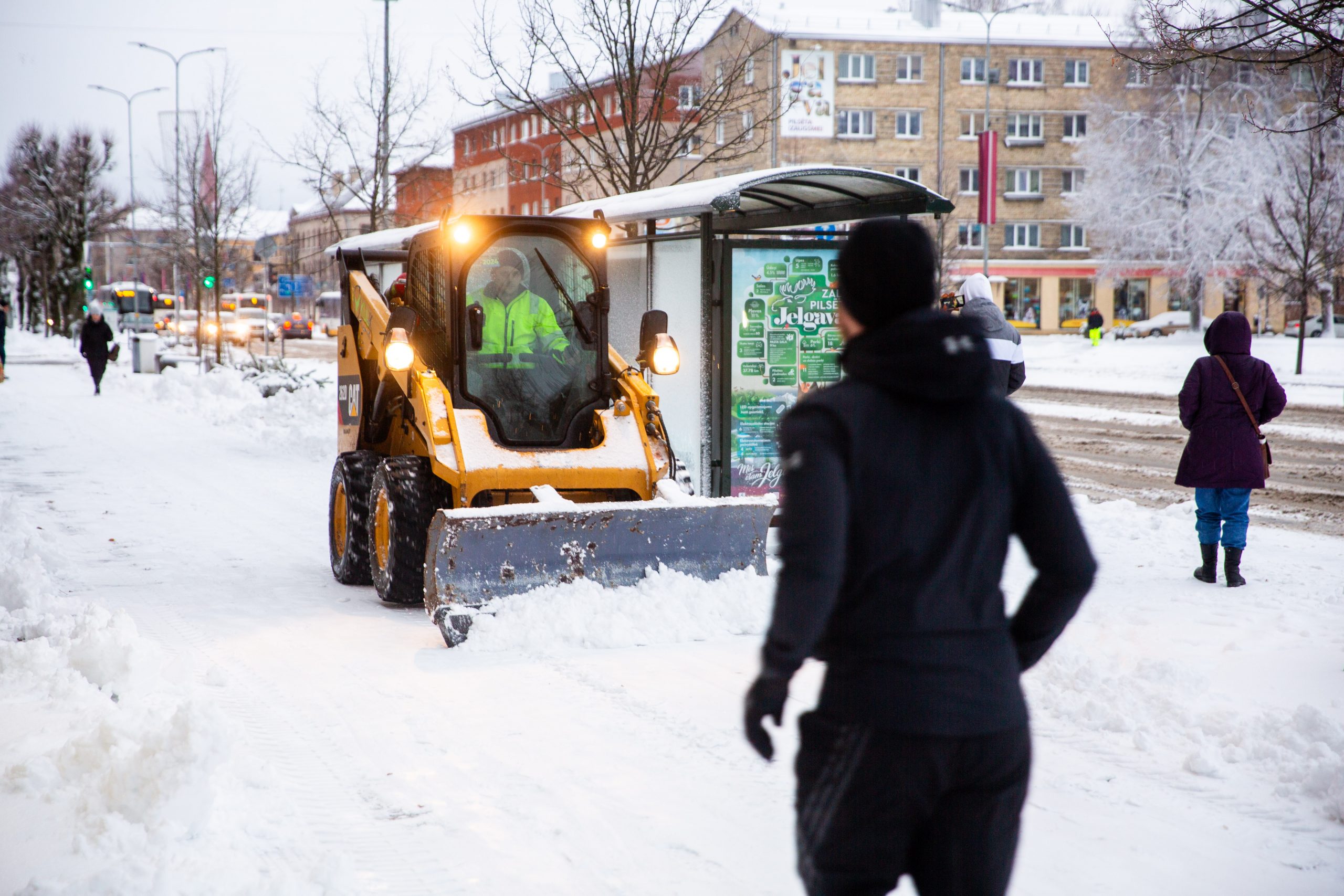 Sniega tīrīšanas darbos ir iesaistīta visa lielā un mazā tehnika un sētnieki, kas uztur kārtībā ietves.
