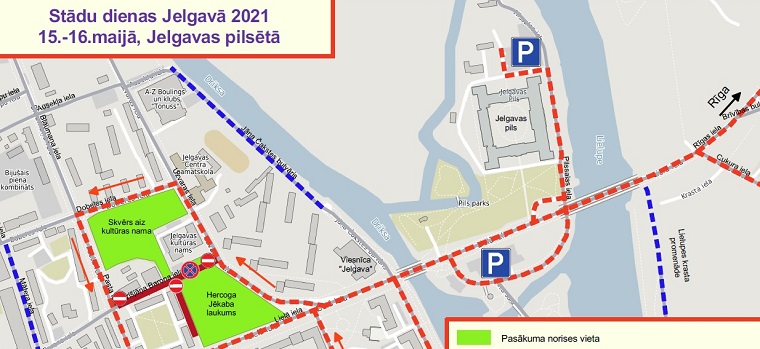 Apgaismojums Ganību iela Garozas iela Hercoga Jēkaba laukums Ielu uzturēšana Ietve Lielupe Lielā iela Loka maģistrāle Nedēļa Pasta sala Pilsētsaimniecība Rīgas iela Satiksmes ierobežojumi Svētku nodrošināšana