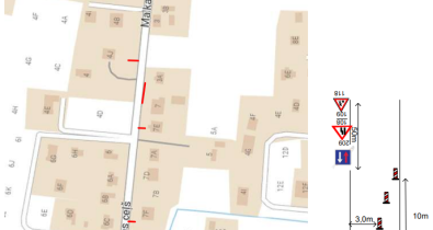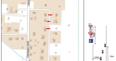 Slēgta satiksmes kustība Ošu ceļā (no Riekstu ceļa līdz 1.līnijai, pagarinājums) un ierobežota satiksmes kustība Ošu ceļā (no 1.līnijas līdz Atmodas ielai)