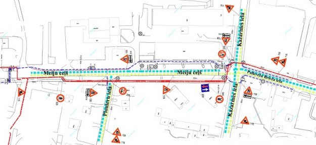 Turpinās elektronisko sakaru tīklu izbūve Meiju ceļā. Noteiktas izmaiņas satiksmes ierobežojumiem posmā no Kazarmes ielas līdz Pionieru ielai, ievērojot saskaņoto Satiksmes organizācijas shēmu.