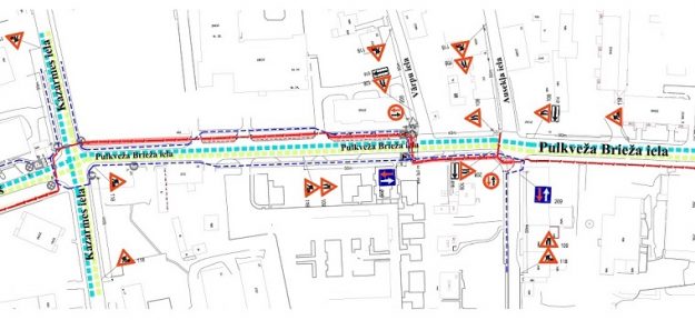 Pulkveža Brieža ielā ierobežota satiksme no Ausekļa ielas līdz Kazarmes ielai.