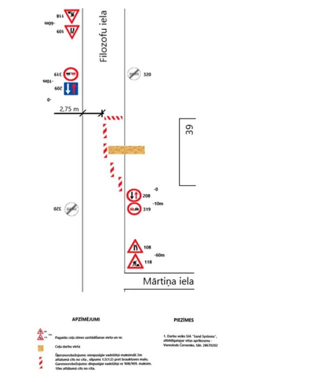 No ceturtdienas, 25. jūlija, līdz 8. augustam būs satiksmes ierobežojumi Filozofu ielas posmā no Mārtiņa ielas līdz Augusta ielai.