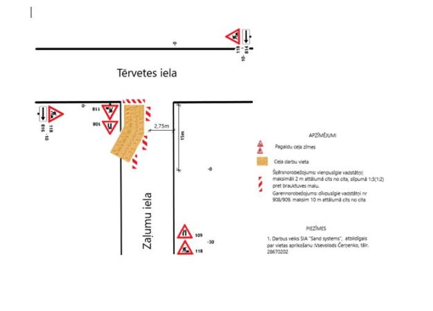 Satiksmes ierobežojumi saistīti ar kanalizācijas un ūdensvada pieslēguma izbūvi. Autovadītāji aicināti ievērot saskaņoto satiksmes organizācijas shēmu un objektā izvietotās ceļa zīmes.