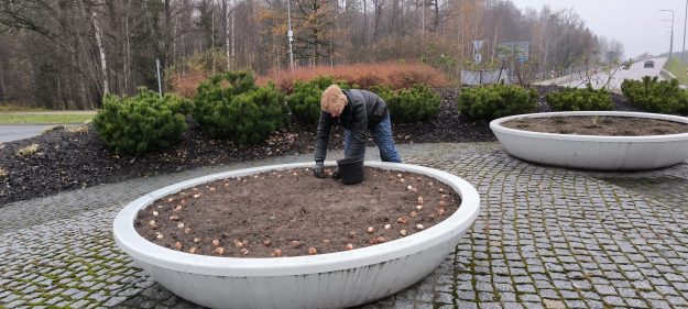 Šonedēļ Loka maģistrāles rotācijas apļu puķu podos pirmo reizi tiek stādītas tulpes sarkanos un dzeltenos toņos, kas pavasarī radīs krāsainu pilsētas ainavu.