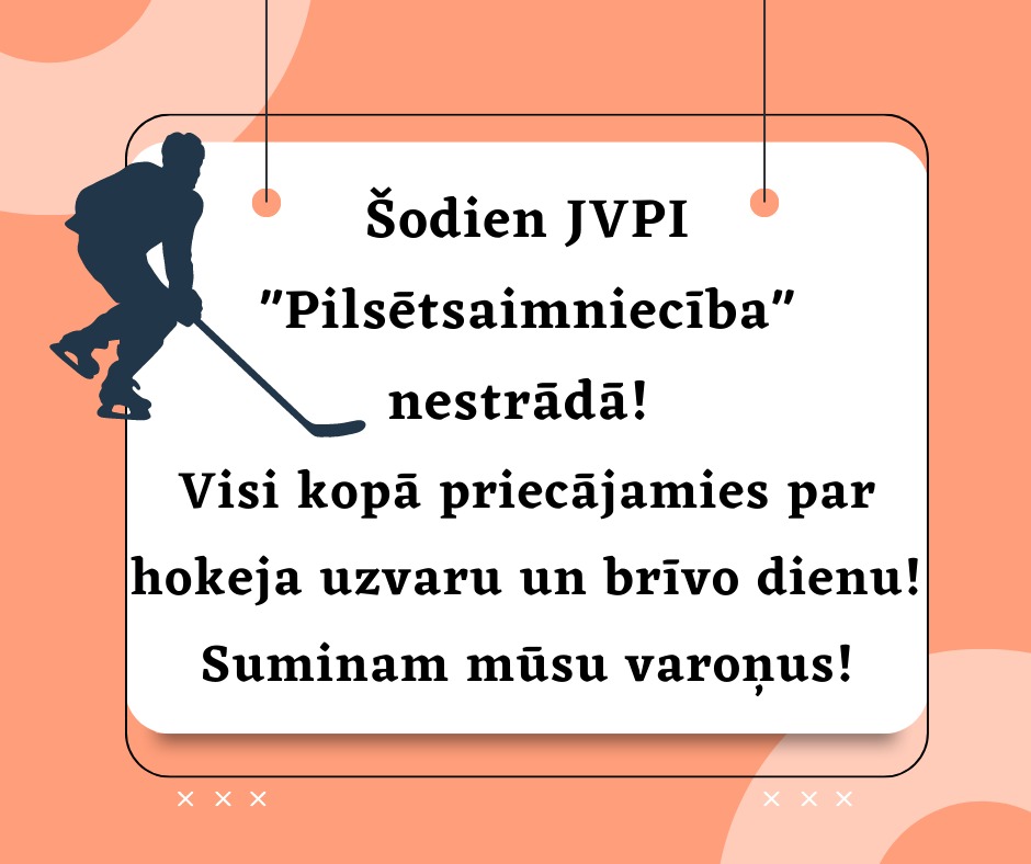 Šodien JVPI “Pilsētsaimniecība” nestrādā! Visi kopā priecājamies hokeja uzvaru un brīvo dienu! Suminam mūsu varoņus!