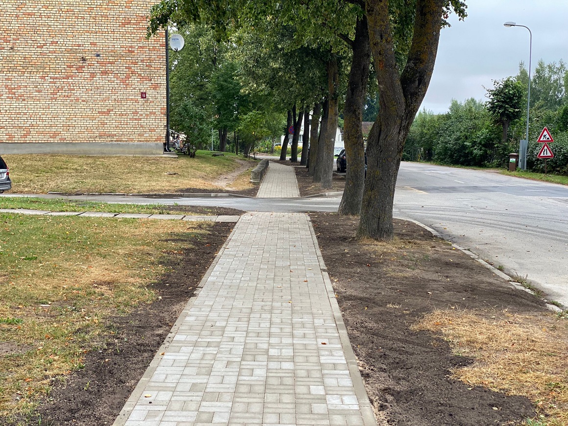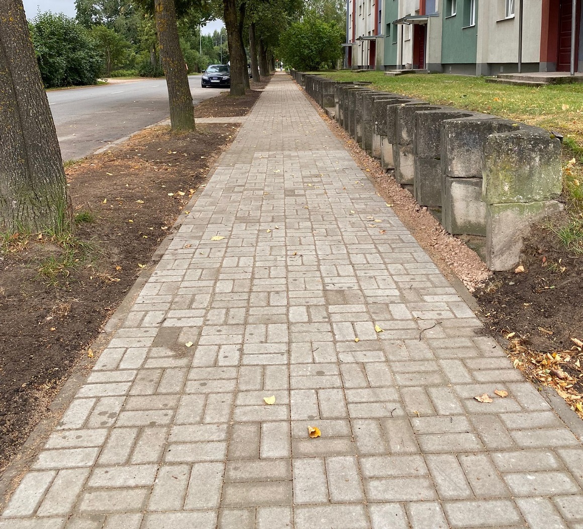 Ir noslēgušies ietves seguma atjaunošanas darbi 4.līnijā, posmā no Dobeles šosejas līdz ēkai 4.līnija Nr. 15.