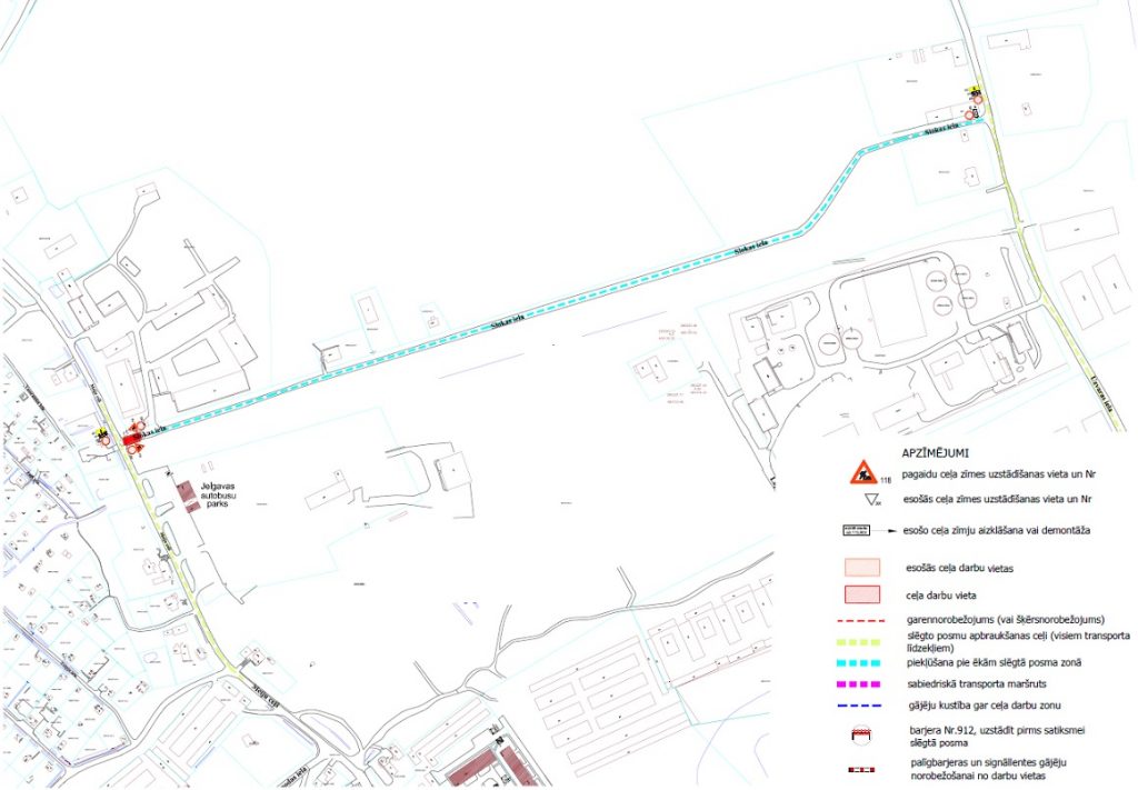 Informējam, ka sakarā būvdarbiem objektā – Jelgavas poldera lidlauka dambja pārbūve plūdu draudu novēršanai, tiks aizliegta satiksme vairākos ielu posmos: