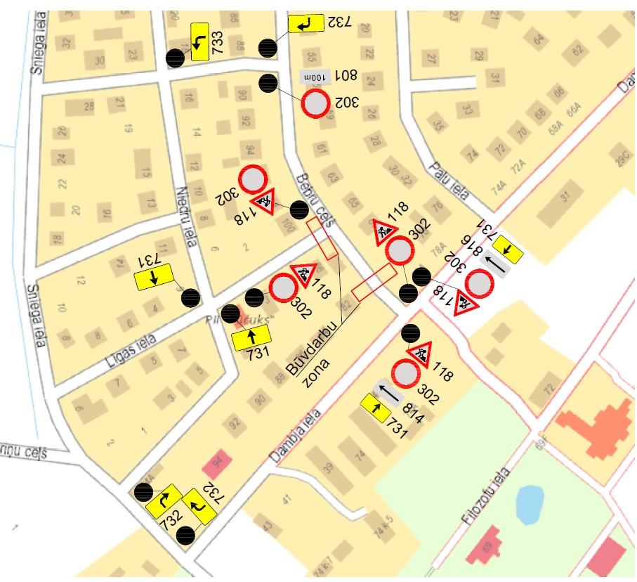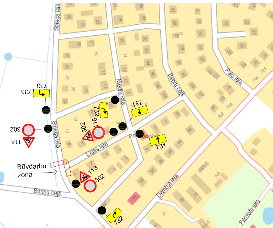 Sakarā ar būvdarbiem objektā “Zaļās infrastruktūras izveidošana Sniega ielas pieguļošajās teritorijās” tiks aizliegta satiksme sekojošos ielu posmos: