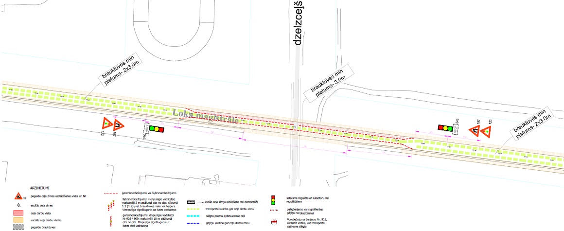 Aktuālā satiksmes organizācija Loka maģistrālē uz dzelzceļa pārvada