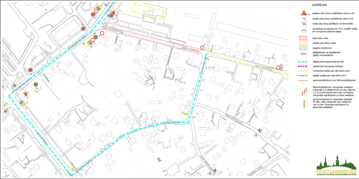 Turpinoties būvdarbiem Loka maģistrāles apbraucamajos ceļos, Pumpura ielas posms no Paula Lejiņa līdz Kronvalda ielai asfaltēšanas darbu laikā slēgts līdz 8.augustam. Apbraucamais ceļš visiem transporta līdzekļiem pa Kronvalda ielu, Olaines ielu un Rīgas ielu.
