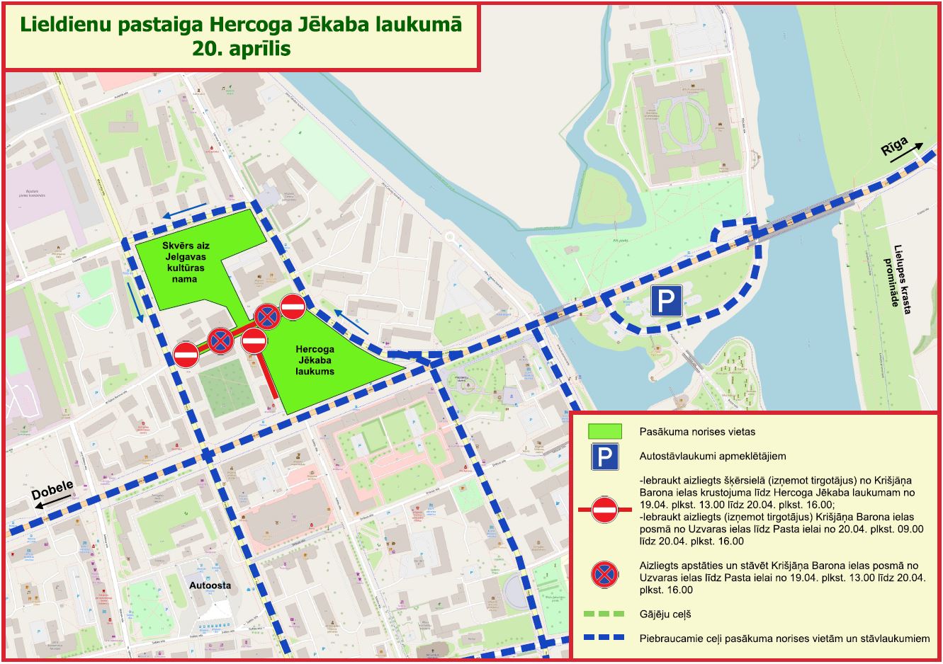 Dec152025 Ierobežota satiksmes un gājēju kustība Uzvaras ielā un ierobežota gājēju kustība Hercoga Jēkaba laukumā; Ierobežota satiksmes un gājēju kustība stāvlaukumā Krišjāņa Barona ielā 6A