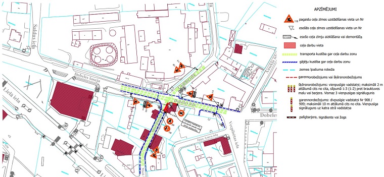 Dec122025 Pārbūvēs Dobeles šosejas un Atmodas ielas krustojuma luksoforu objektus; noteikti satiksmes un gājēju kustības ierobežojumi