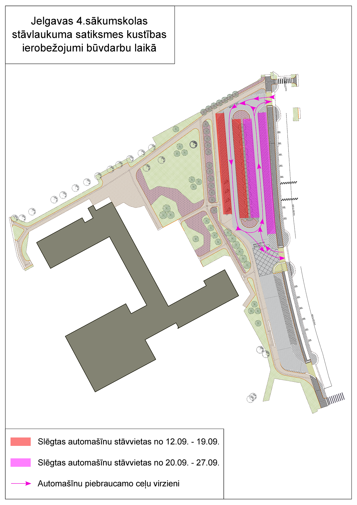 Aktualizēta satiksmes organizācija stāvlaukumā pie 4.sākumskolas, turpinoties būvdarbiem Aktualizēta satiksmes organizācija stāvlaukumā pie 4.sākumskolas, turpinoties būvdarbiem Pulkveža Oskara Kalpaka ielaSatiksmes ierobežojumiSkolaStāvlaukumsDalītiesFacebookTwitterGoogle+PinterestLinkedIn Līdzīgi rakstiIerobežota satiksme un gājēju kustība Dobeles šosejas un Atmodas ielas krustojumā – Pagarinājums16.12.2025Slēgta satiksmes kustība Ošu ceļā (no Riekstu ceļa līdz 1.līnijai, pagarinājums)16.12.2025Satiksmes organizācija pie Zemgales Olimpiskā centra 27. decembrī16.12.2025