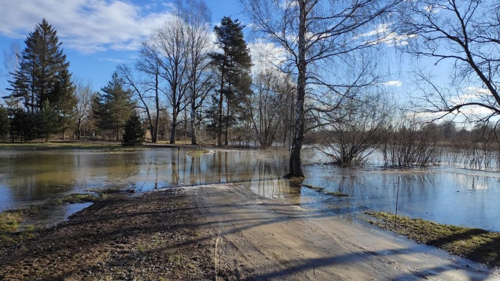 Applūdusi Bāra ceļa brauktuve pie tilta