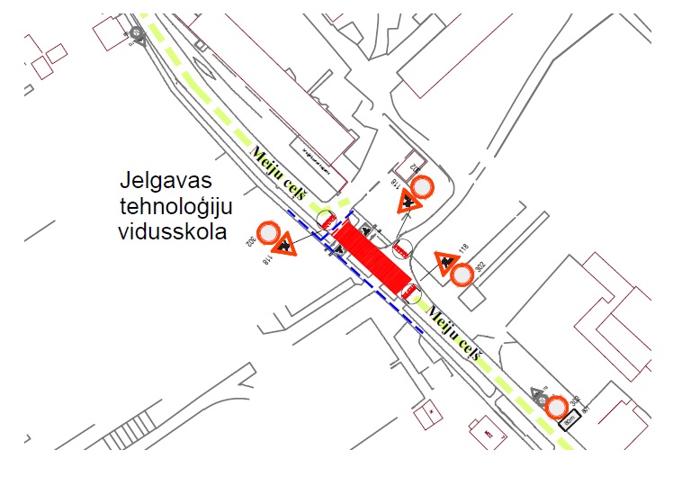 Atjauno ātrumvalni pie Jelgavas Tehnoloģiju vidusskolas; slēgts Meiju ceļa posms no Kazarmes līdz Zvejnieku ielai
