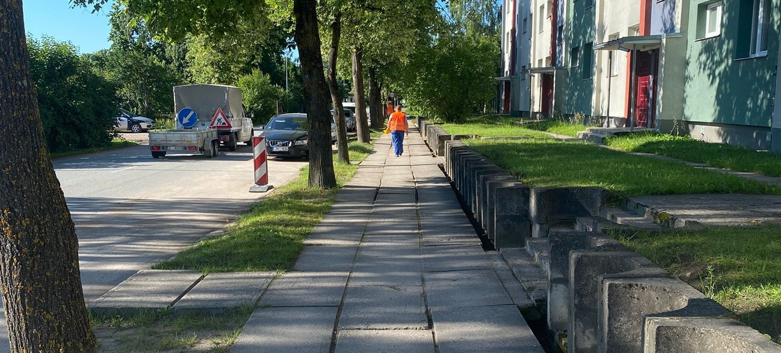 Šodien, 11. jūlijā, uzsākti ietves seguma atjaunošanas darbi 4.līnijā, posmā no Dobeles šosejas līdz ēkai 4.līnija Nr.15. Tiks demontētas vecās betona plātnes apmēram 280 metru garā posmā, to vietā tiks ieklāts betona bruģis gandrīz 530 kvadrātmetru platībā.