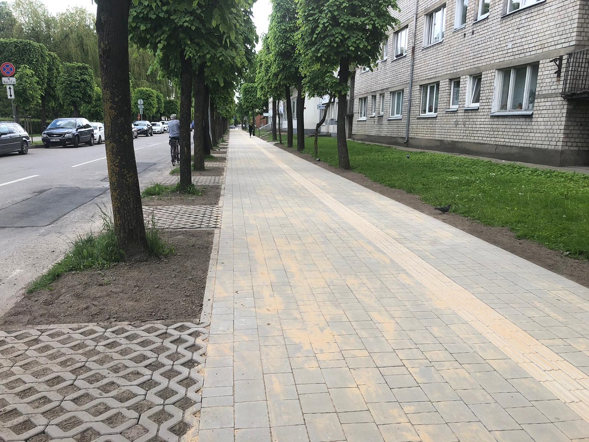 Katoļu ielā šodien pabeigti ietves seguma atjaunošanas darbi. Ietves segums atjaunots ar bruģi 559 m2 platībā posmā no Driksas ielas līdz Raiņa ielai labajā pusē virzienā no Lielās ielas. Ietves seguma atjaunošanu veica SIA “KULK” ikdienas darbu ietvaros.