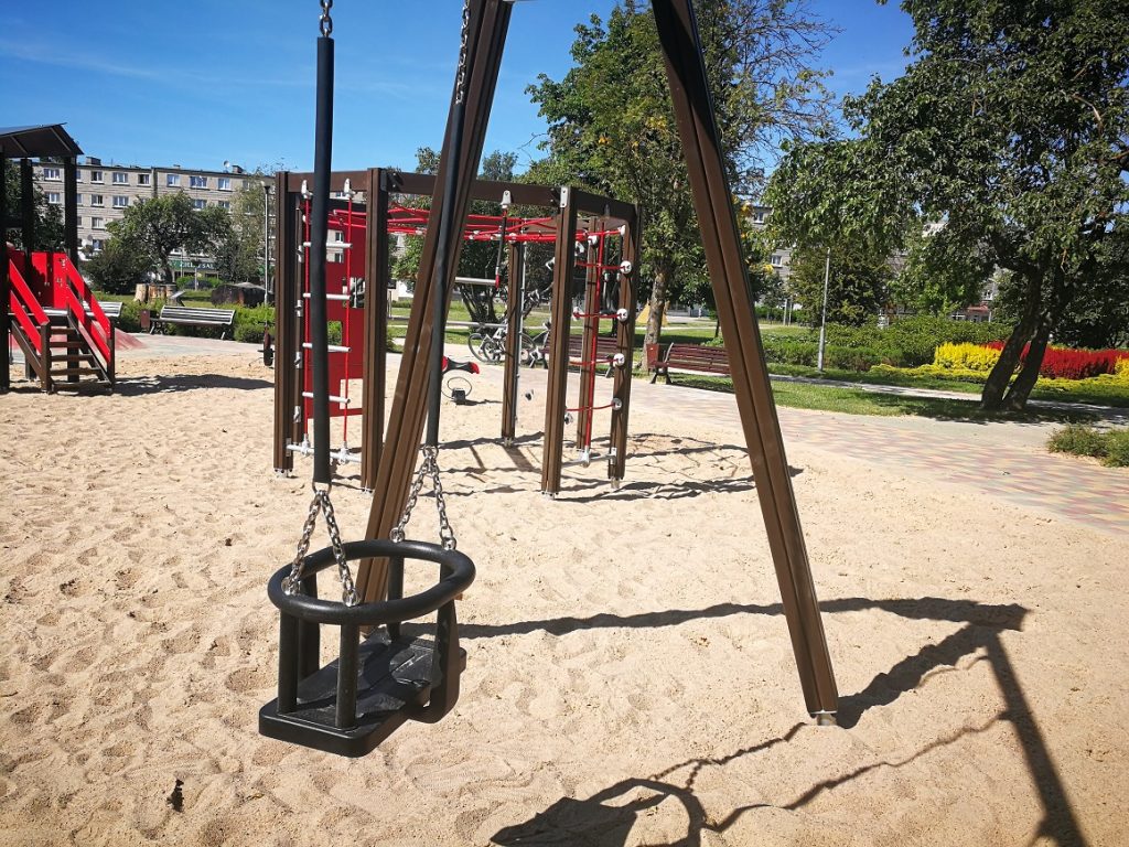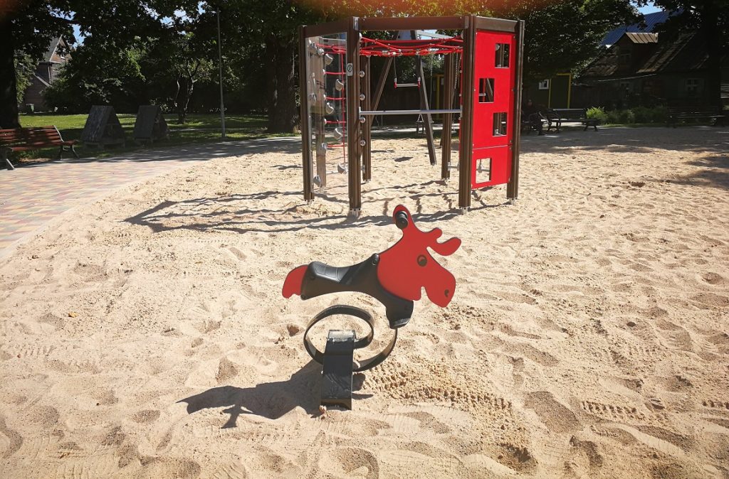 Bērnu rotaļu laukumā Ozolskvērā uzstādītas jaunās iekārtas