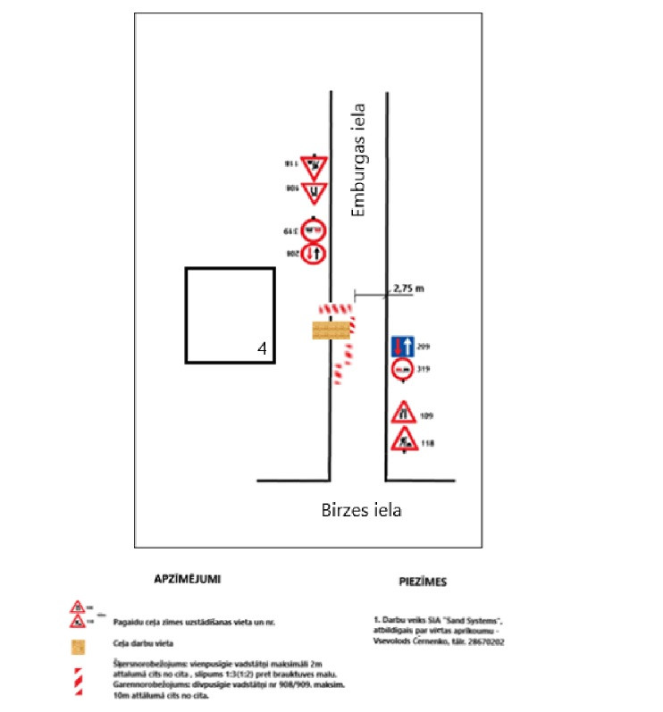 Ūdensvada un kanalizācijas tīkla izbūves laikā no otrdienas, 22. jūlija, līdz 23. jūlijam ierobežota satiksme un gājēju kustība Emburgas ielas posmā no Cepļu ielas līdz Birzes ielai. Darbu uzsākšanas un veikšanas laiks atkarīgs no tehnoloģiskā procesa. Darbus pēc SIA “Cander Serviss” pasūtījuma veic SIA “Sand Systems”.