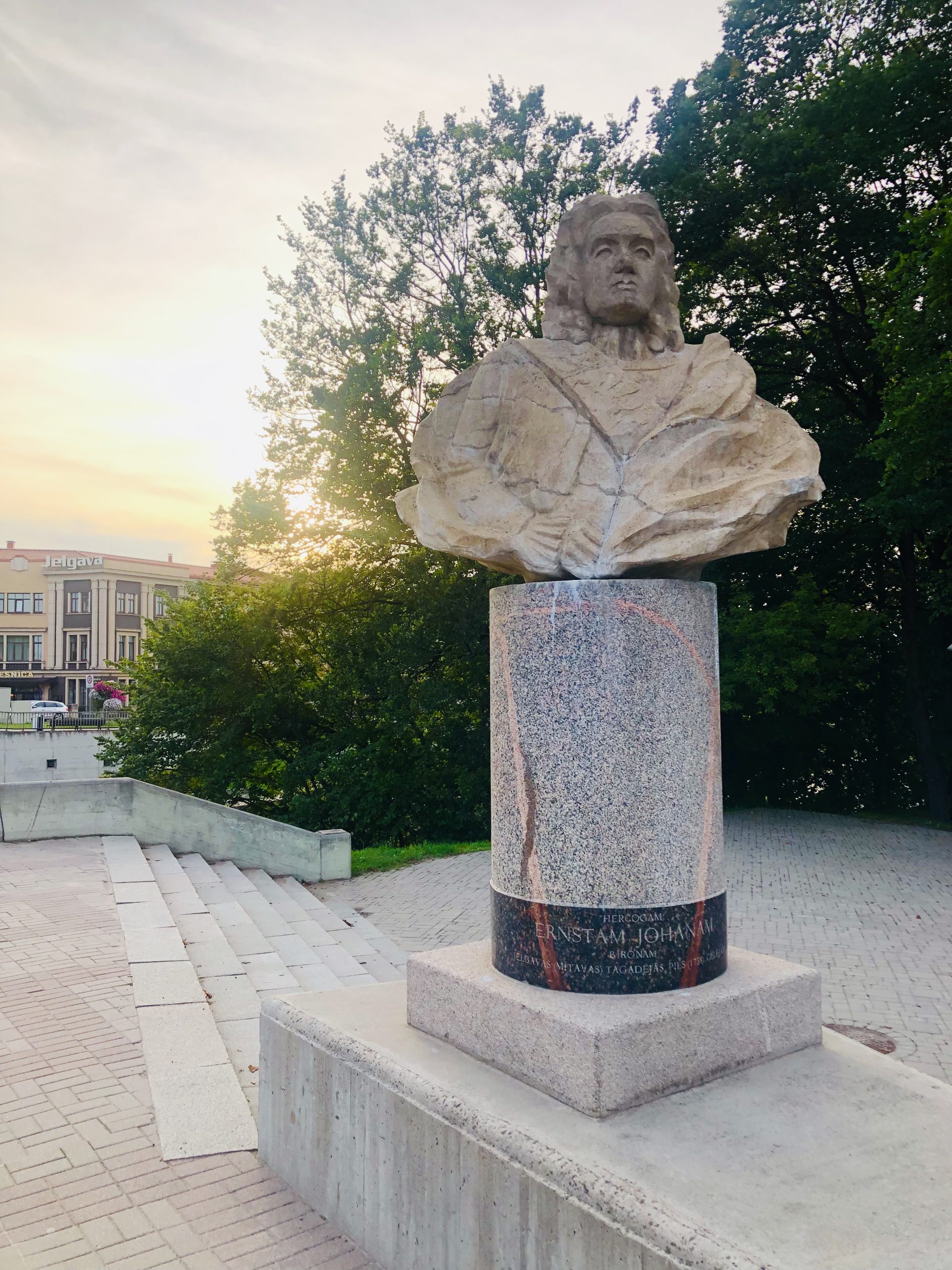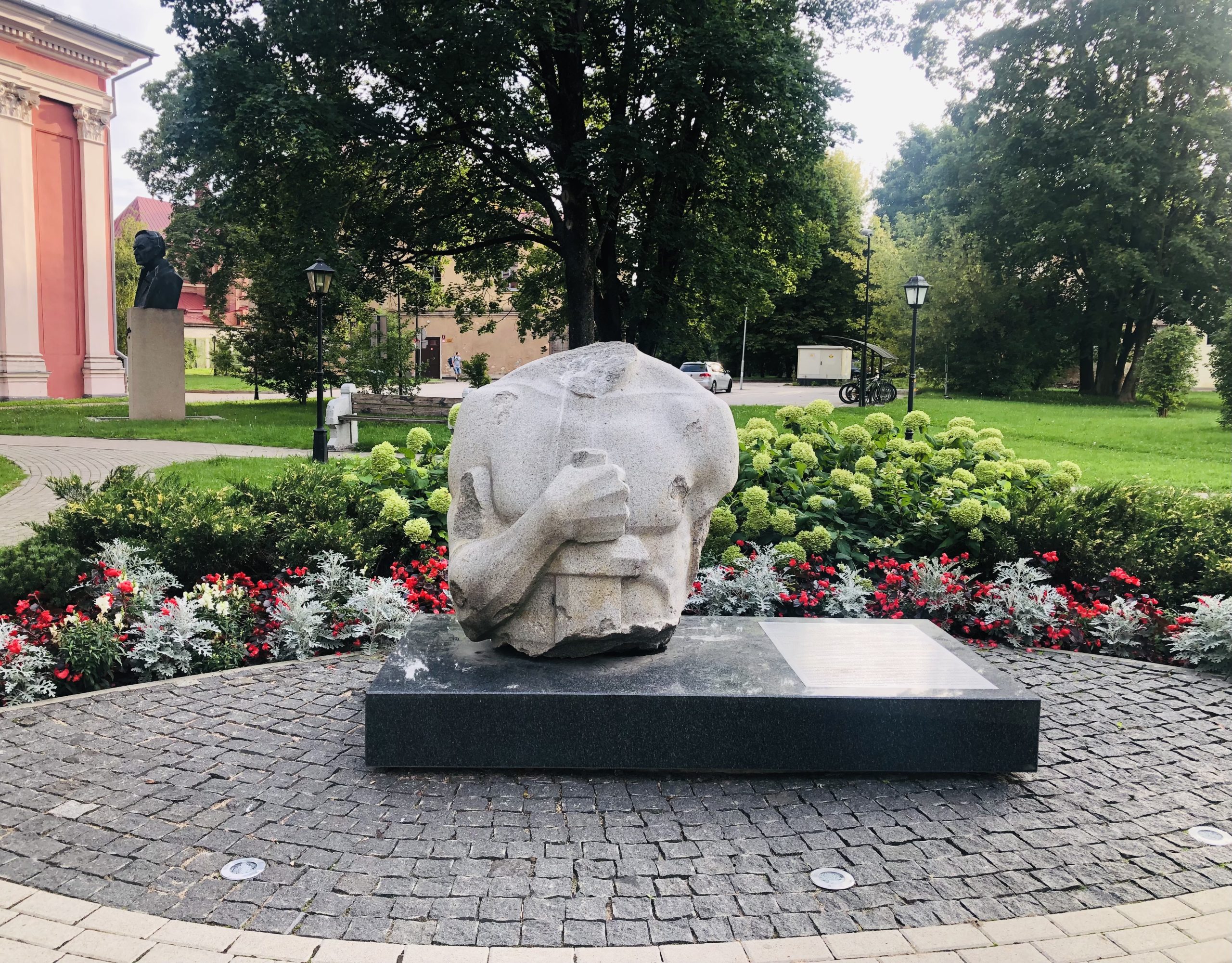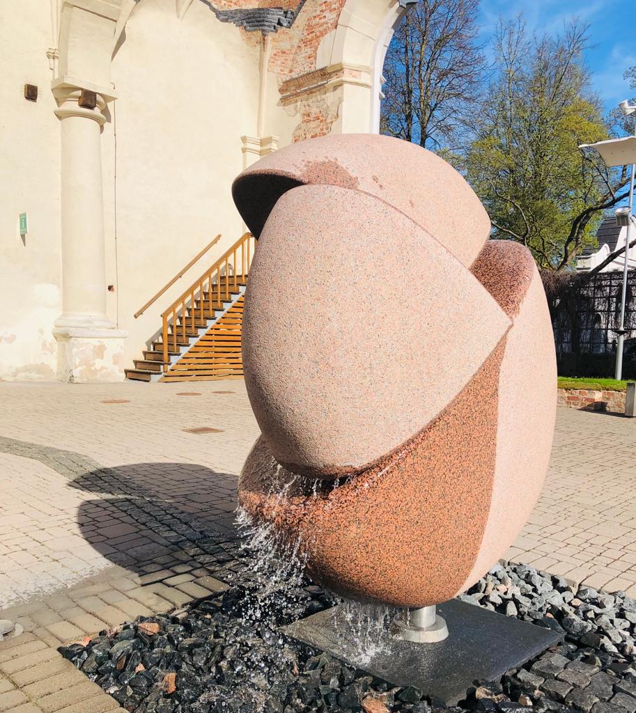 Akmens skulptūra – strūklaka "Trīsvienība | Akadēmijas iela 1 | Skulptūra – strūklaka „Trīsvienība” sastāv no trim daļām, kas simbolizē kristīgās ticības augstāko vērtību kodolu – Dieva tēva, Dieva dēla un Dieva Svētā gara vienotību. Materiāls: granīts.