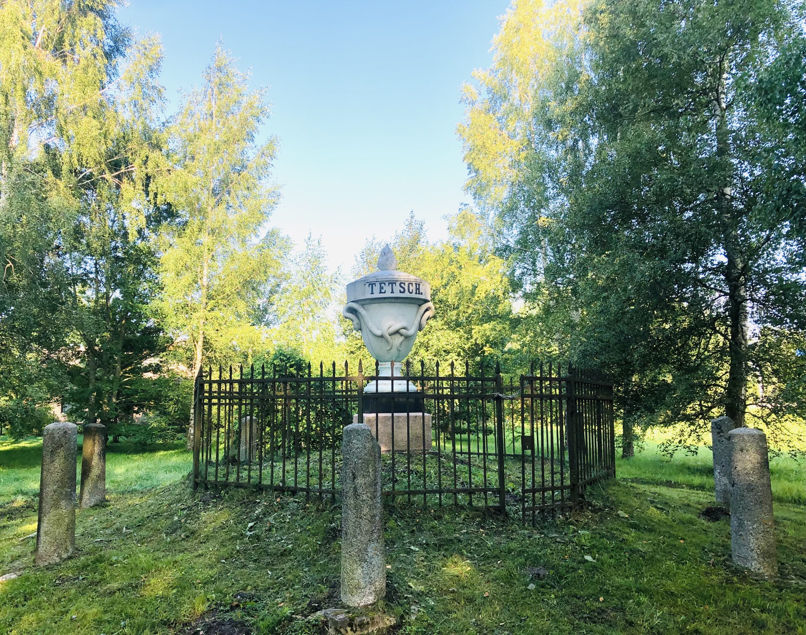| Dobeles šosejas malā | 1793.gadā tieslietu padomnieks, advokāts K.L.Tečs sagatavo testamentu, kas paredz izveidot Mīlestības aleju – tā savienotu viņa un viņa drauga galma padomnieka S.G.Švandera kapus. Katru gadu pirmā amatnieka meita, kas iziet pie vīra saņemtu nelielu naudas summu, bet par to viņai jāiestāda 12 bērzi alejā. Tradīcija ir spēkā līdz 2.pasaules karam. 1896. gadā oriģinālā marmora vāze apgāzās, 1897. g. to no jauna izgatavoja Mārtiņš Brauers. |