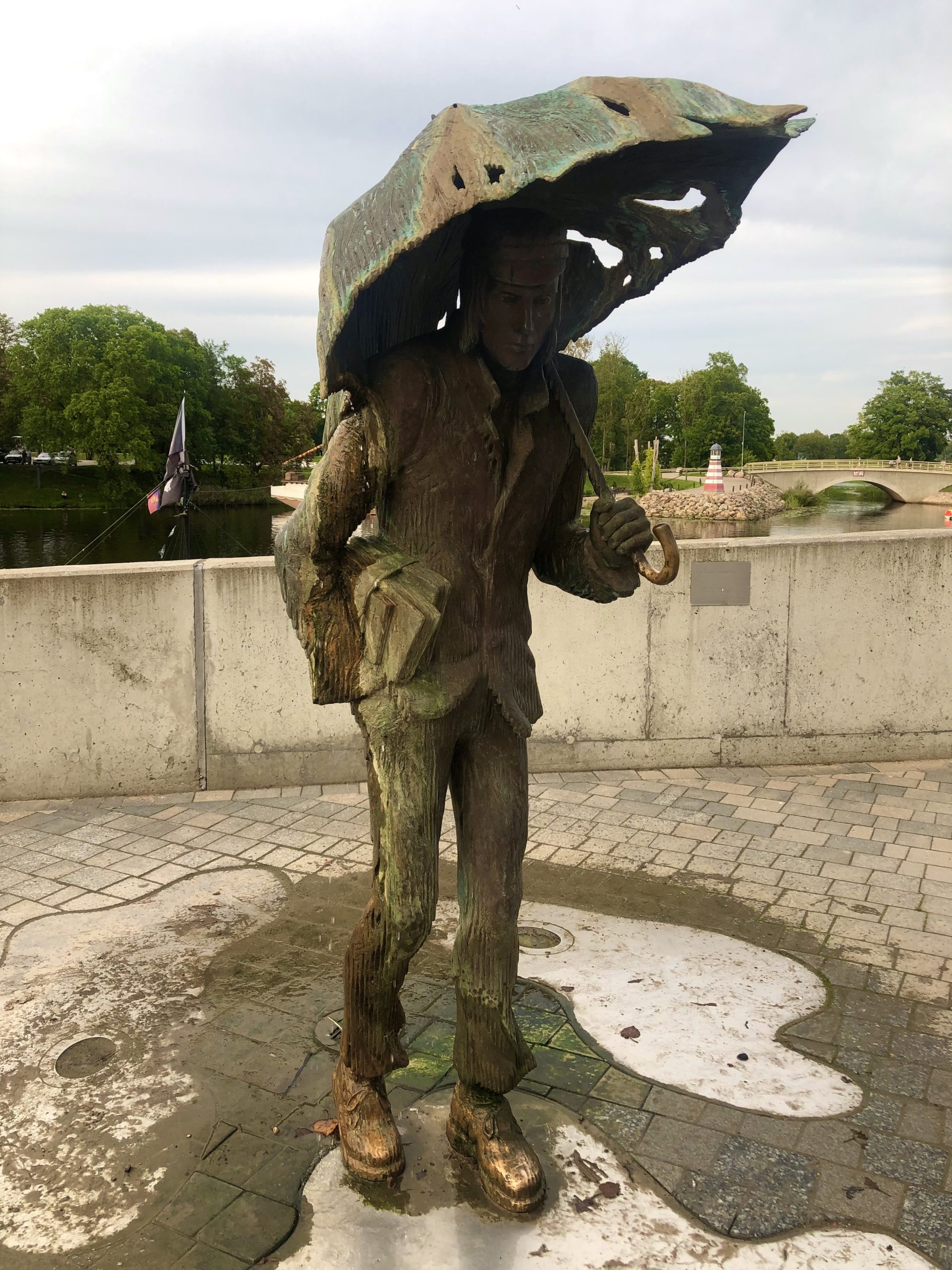 Skulptūra – strūklaka bronzas “Students” | Jāņa Čakstes bulvāris | 2,25 metrus augstā skulptūra veidota no bronzas, tā sver aptuveni 450 kg. Tēlainais Jelgavas students iemūžināts, ejot pa peļķēm, kas veidotas no tērauda, bet pa lietussargu tek ūdens. Studenta lietussarga rokturim ir īpašs spēks – jāievēlas vēlēšanās un jāpieskaras rokturim, tad tā piepildīsies. Studenta tēls balstīts uz senās studentu dziesmas vārdiem. Skulptūras autors Kārlis Īle, atklāta 2013. gada 2. septembrī. Materiāls: nerūsējošais tērauds, granīta bruģis.