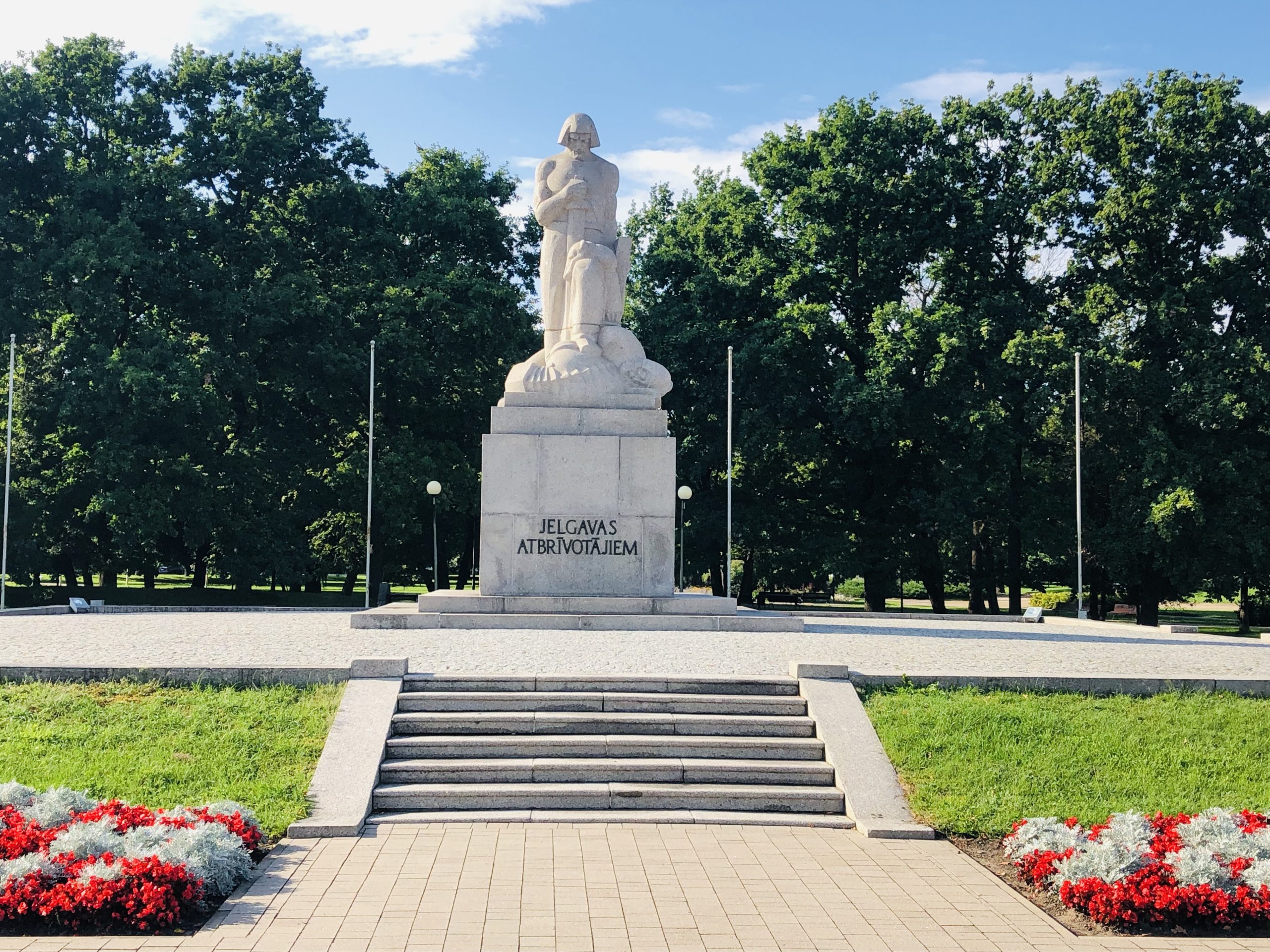 | Lielā iela 38 | 2018. gadā uzstādīts tēlnieka Kārļa Īles interaktīvajā vides objekts “Laika rats 100” .14 metru rādiusā metālā attēloti desmit cilvēku silueti reālā augumā, kas simbolizē desmit mūsu valsts gadus, pie katra silueta lasāmi desmitgades nozīmīgākie notikumi. Uz figūru plaknēm, kas vērstas uz apļa ārpusi, būs iegravēti attiecīgās desmitgades svarīgākie Jelgavas vēsturiskie notikumi Latvijas kontekstā.