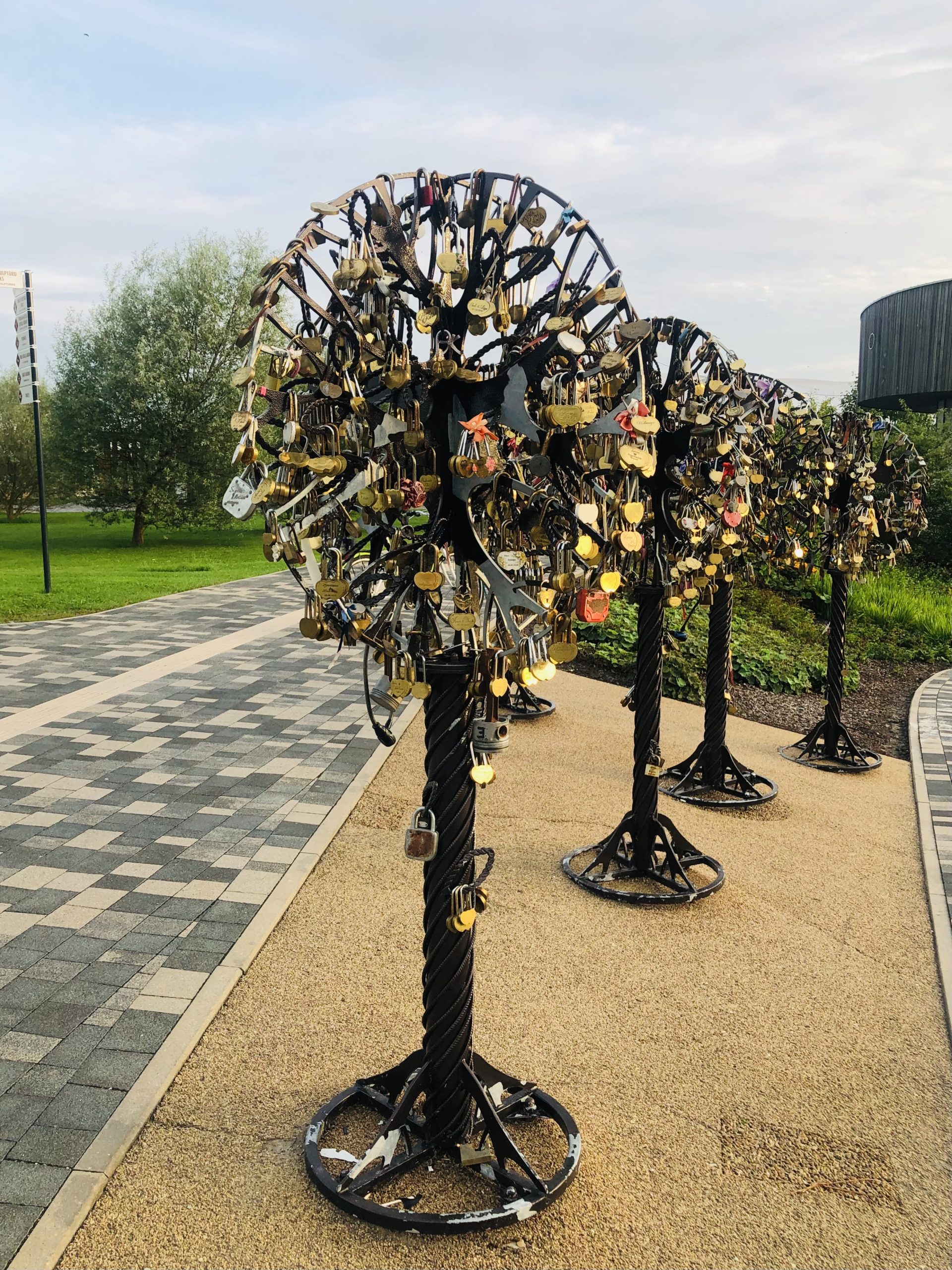 | Pasta sala | Metāla skulptūra "Koks". Trīs mīlestības koki, kuros tradicionāli jaunlaulātie kāzu dienā var piestiprināt atslēgas. Pirmie trīs Mīlestības koki ir "Jelgavas Pils aptiekas" dāvinājums pilsētai 2014. gadā. 2018. gada janvārī uzstādīti vēl divi koki, kas ir "L.A. metal" dāvinājums. Metālmākslinieks Aldis Sproģis.