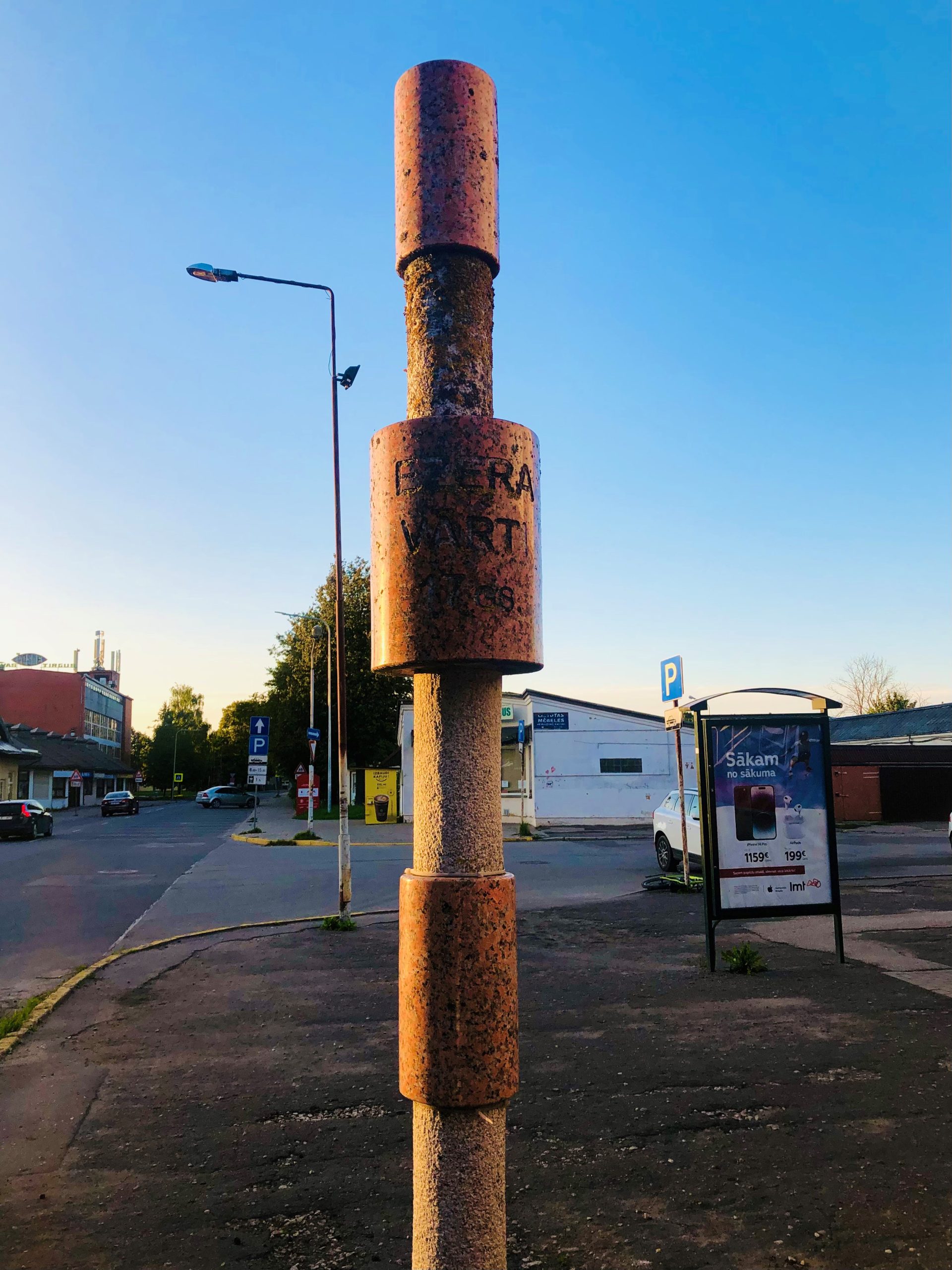 | Dobeles iela | Dzelzs vārtu stabs ar mūra motīvu, kurā iestrādāts akmens ar vēsti, ka šeit 17. gadsimtā bijuši Dobeles vārti. . Atklāta 2008. g. 22. decembrī, tēlnieks Ronalds Jansons. Materiāls: karkasa režģis – krāsots tērauds, granīta akmens, pamatne – granīta bruģis.