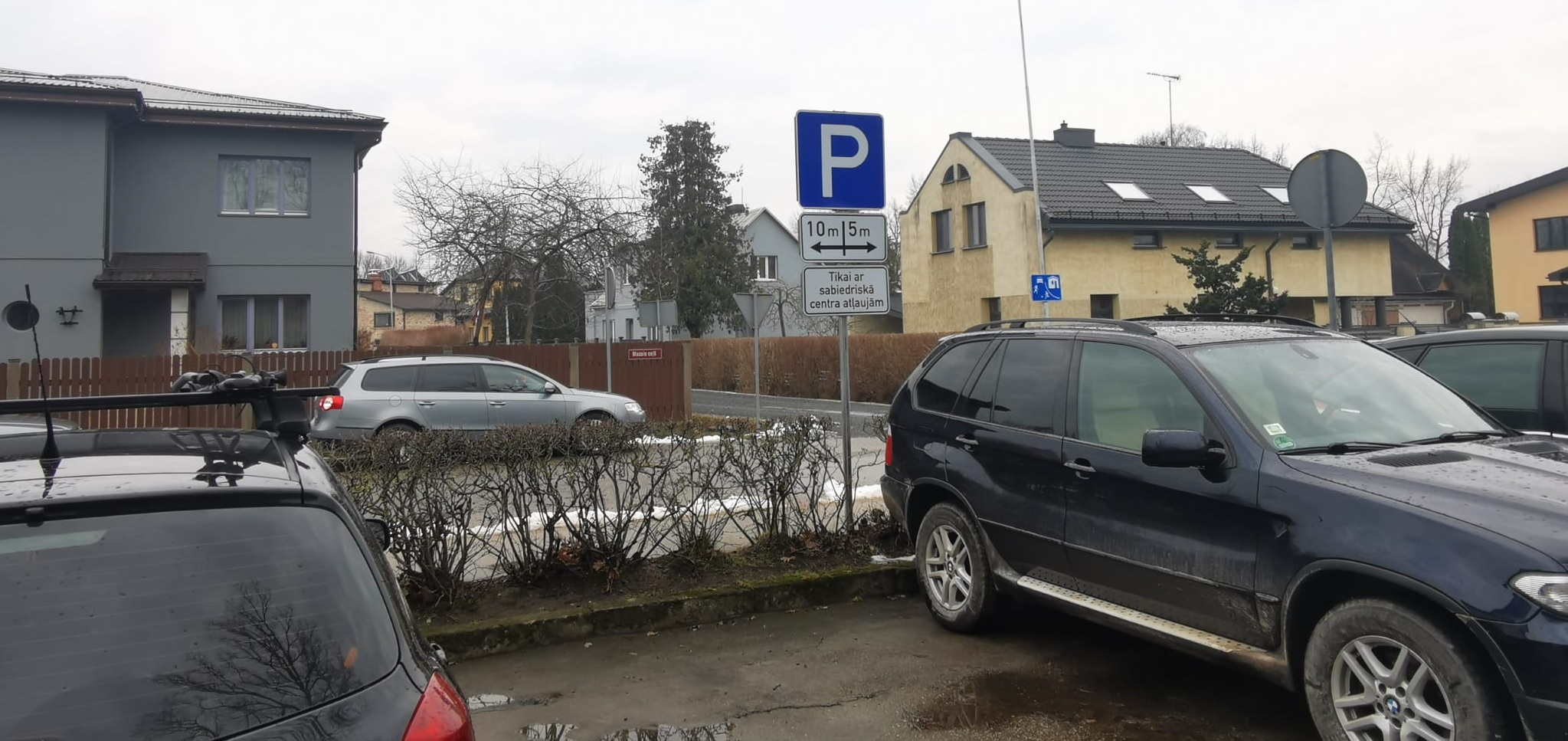 Tāpat stāvlaukumā blakus divām invalīda stāvvietām izveidotas stāvvietas, kurās turpmāk automašīnas varēs novietot tikai ar Sabiedriskā centra atļaujām. Uzstādītas ceļa zīmes Nr.537 “Stāvvieta” un papildzīmes – Nr.805 “Darbības zona” un Nr.849 “Pārējā papildinformācija”.