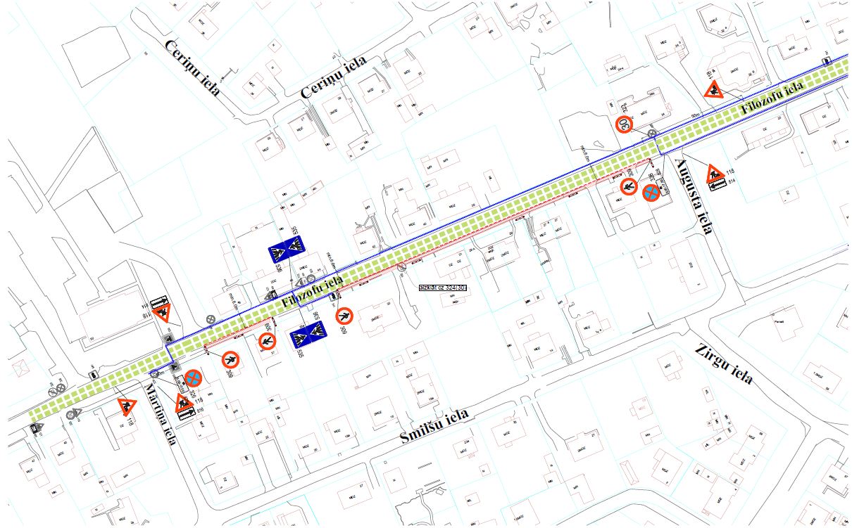 Būvdarbu laikā, no 1. oktobra līdz 24. novembrim, noteikti satiksmes ierobežojumi Filozofu ielas posmā no Mārtiņa ielas līdz Augusta ielai, ievērojot saskaņoto satiksmes organizācijas shēmu. Gājējiem lūgums izmantot ietvi ielas pretējā pusē. Drošākai ielas šķērsošanai pie autobusu pieturas ierīkota pagaidu gājēju pāreja. Maksimālais atļautais braukšanas ātrums noteikts 30 km/h. Transportlīdzekļiem gar būvdarbu zonu aizliegts apstāties darba dienās no plkst. 8:00 līdz plkst. 17:00.