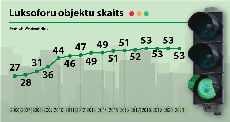 Tāpat luksofori pilsētā ir modernizēti un aprīkoti ar LED lēcām, attālināto vadību, un tas ļauj samazināt luksoforu gaismas spilgtumu nakts laikā.