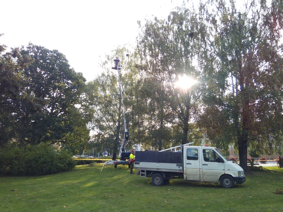 Hercoga Jēkaba laukumā sākta krauķu ligzdu noņemšana