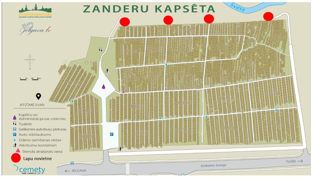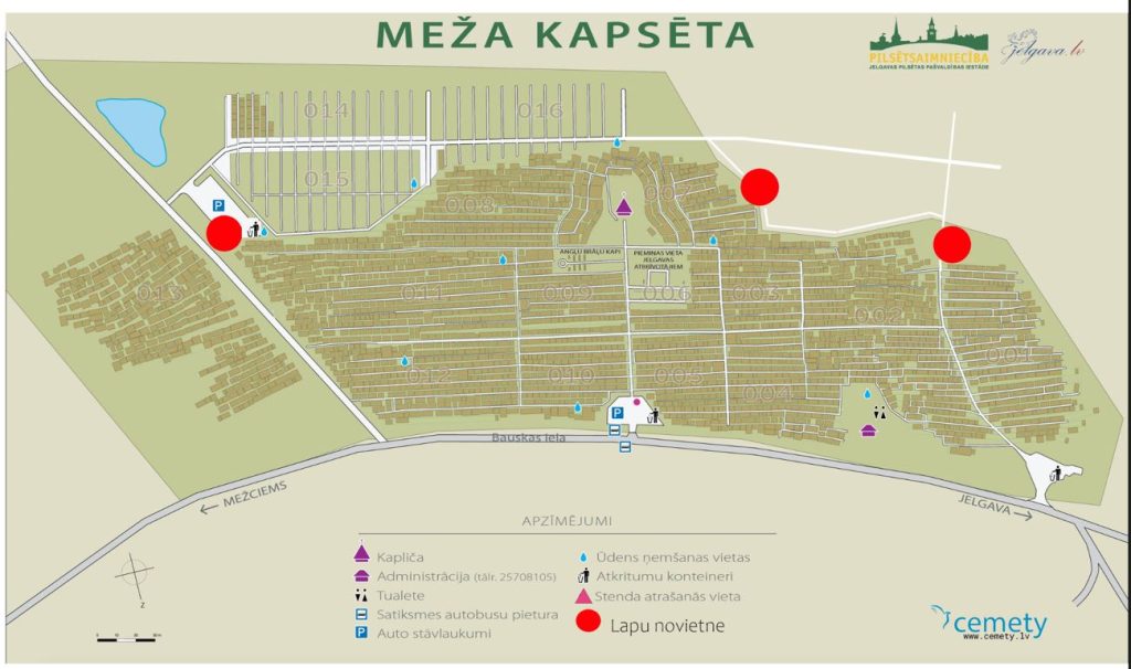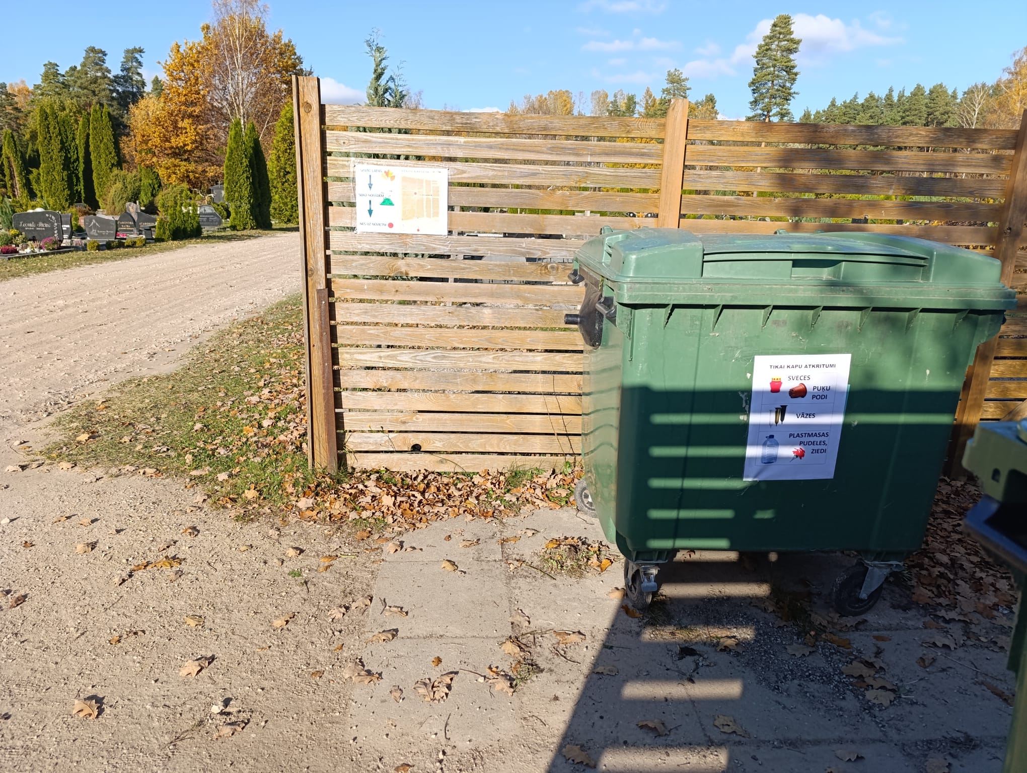 Lai vieglāk atrastu atkritumu novietnes, “Pilsētsaimniecība” ir izvietojusi apmeklētājiem shematiskas norādes. Informatīvas zīmītes un norādes ir izliktas pie galvenajiem celiņiem, pie informāciju stendiem un uz konteineriem. Atgādinām, ka pilsētas kapsētās izvietotie atkritumu konteineri un lapu laukumi ir domāti tikai kapu kopšanas rezultātā radītajiem atkritumiem. Konteineros nedrīkst izmest sadzīves, lielgabarīta atkritumus un būvgružus. Kārtības uzraudzīšanai pie atkritumu laukumiem (konteineriem) ir uzstādītas videonovērošanas kameras. Par nelegālu atkritumu izmešanu pilsētas teritorijā tiek piemērots administratīvais sods no 7 līdz 2800 eiro.