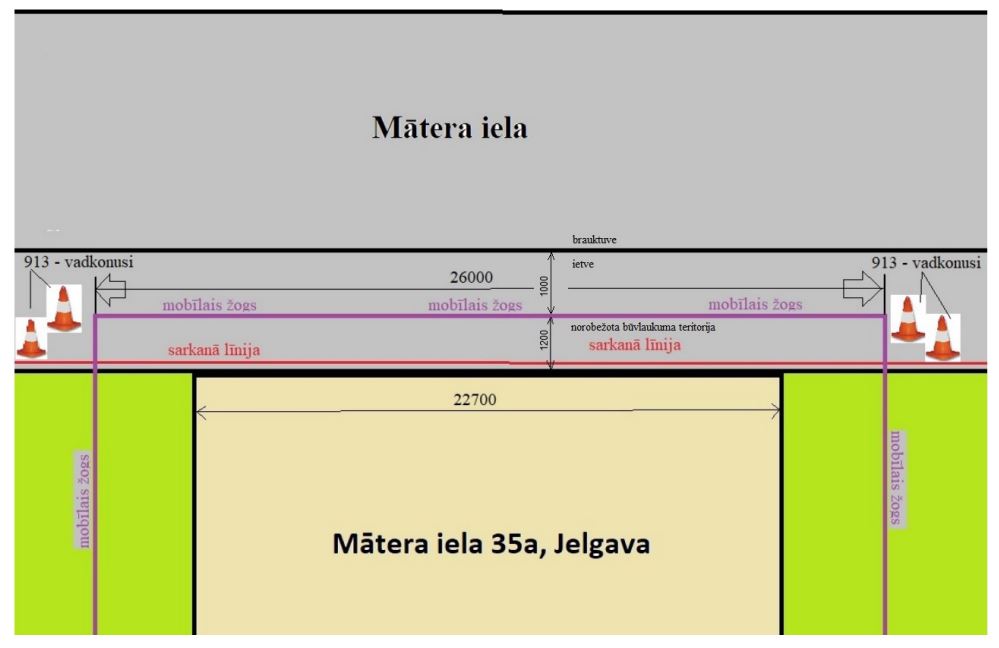 Līdz 28.februārim pagarināts termiņš gājēju kustības ierobežošanai Mātera ielā gar ēku Mātera iela Nr. 35A, būvdarbu laikā – ēkas fasādes atjaunošana, ievērojot saskaņoto Satiksmes organizācijas shēmu.