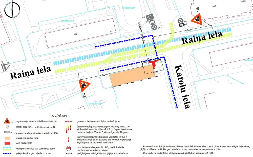 Izdots lēmums no 17.februāra līdz 30. aprīlim ierobežot gājēju kustību Raiņa ielā pie Raiņa ielas un Katoļu ielas krustojuma.