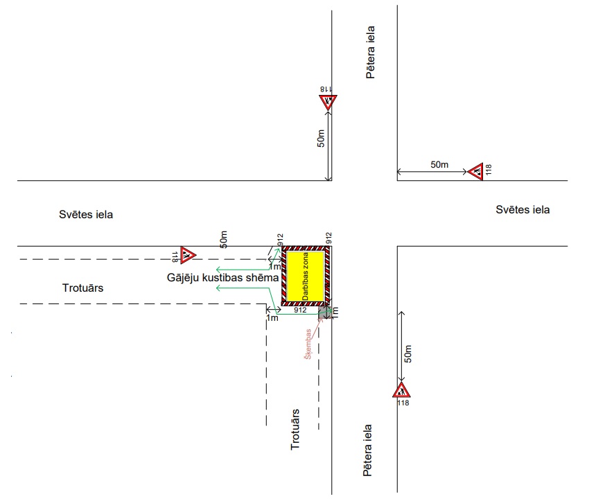 No 26. februāra līdz 8. martam ierobežota gājēju kustība Svētes ielas un Pētera ielas krustojumā (blakus automašīnu stāvlaukumam), būvdarbu laikā – sakaru kanalizācijas remonts, ievērojot saskaņoto satiksmes organizācijas shēmu.