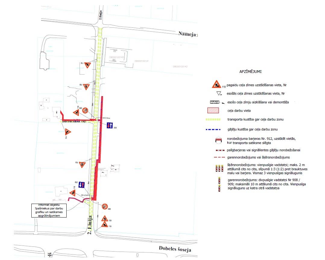 No 10. maija līdz 30. jūnijam ierobežota satiksme 2. līnijā, posmā no Dobeles šosejas līdz Ganību ielai, būvdarbu laikā – tranšejas rakšana, kabeļa guldīšana, ievērojot saskaņoto Satiksmes organizācijas shēmu.