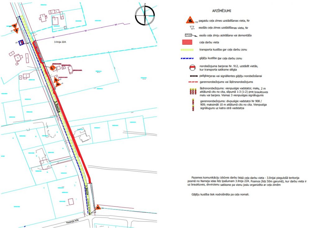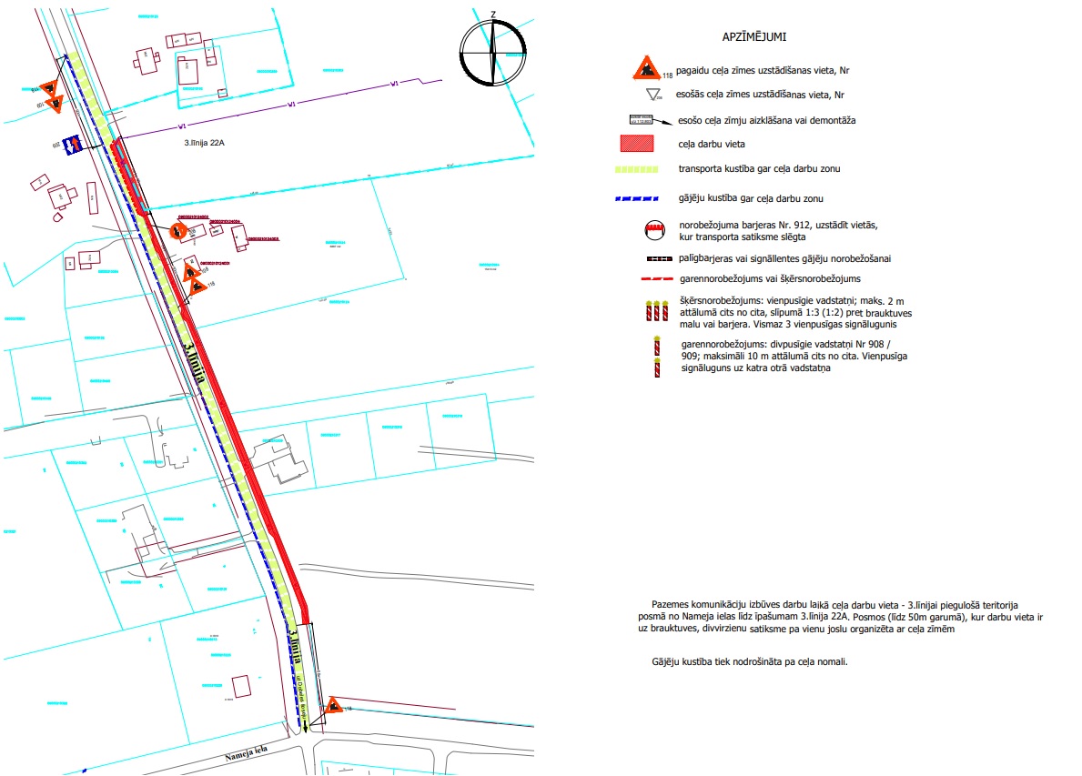 No 2021.gada 13.decembra līdz 2022.gada 14. janvārim ierobežota satiksme 3.līnijā, posmā no Nameja ielas līdz Riekstu ceļam, būvdarbu laikā – 0.4kV kabeļa izbūve, ievērojot saskaņoto Satiksmes organizācijas shēmu.